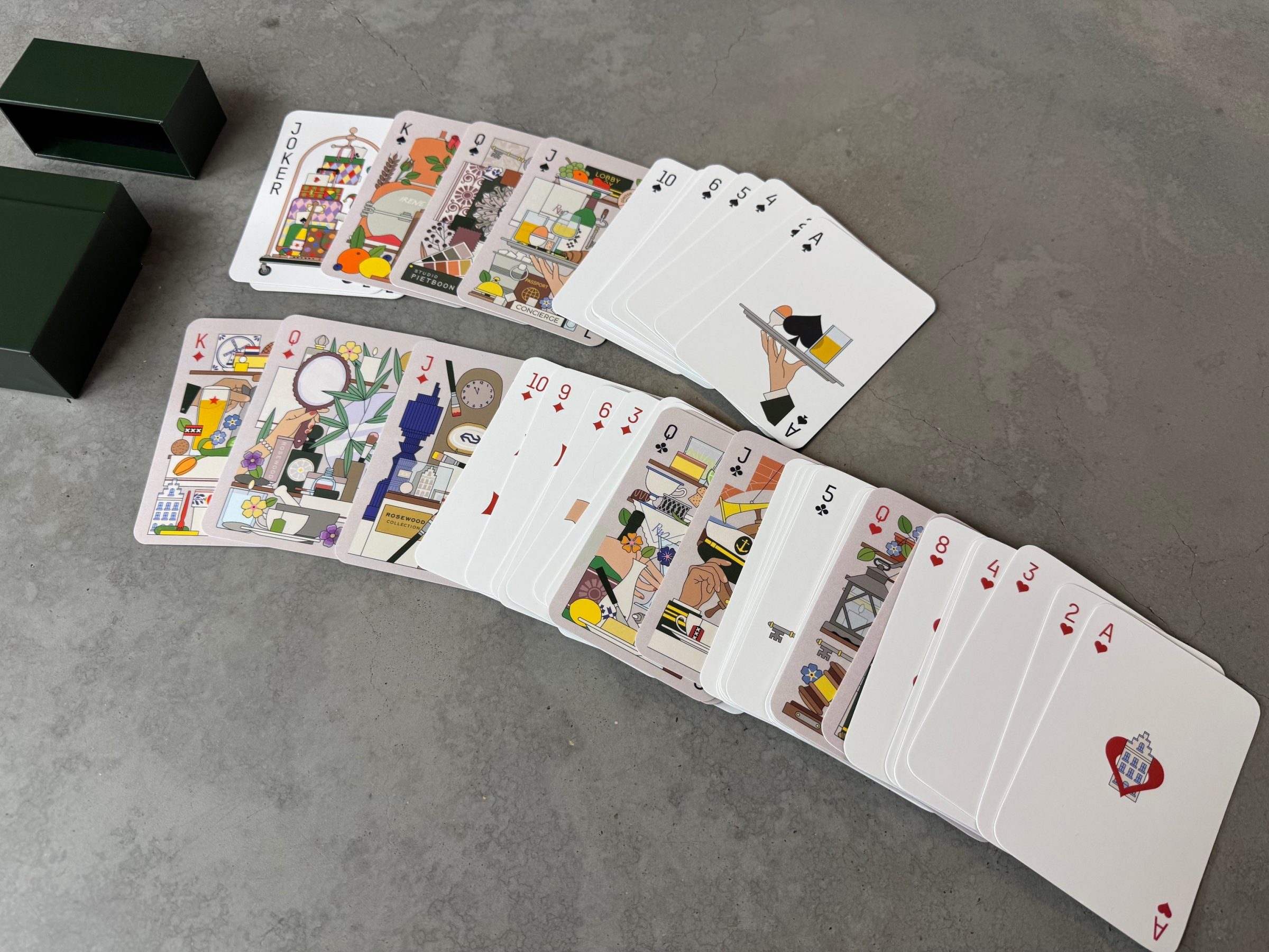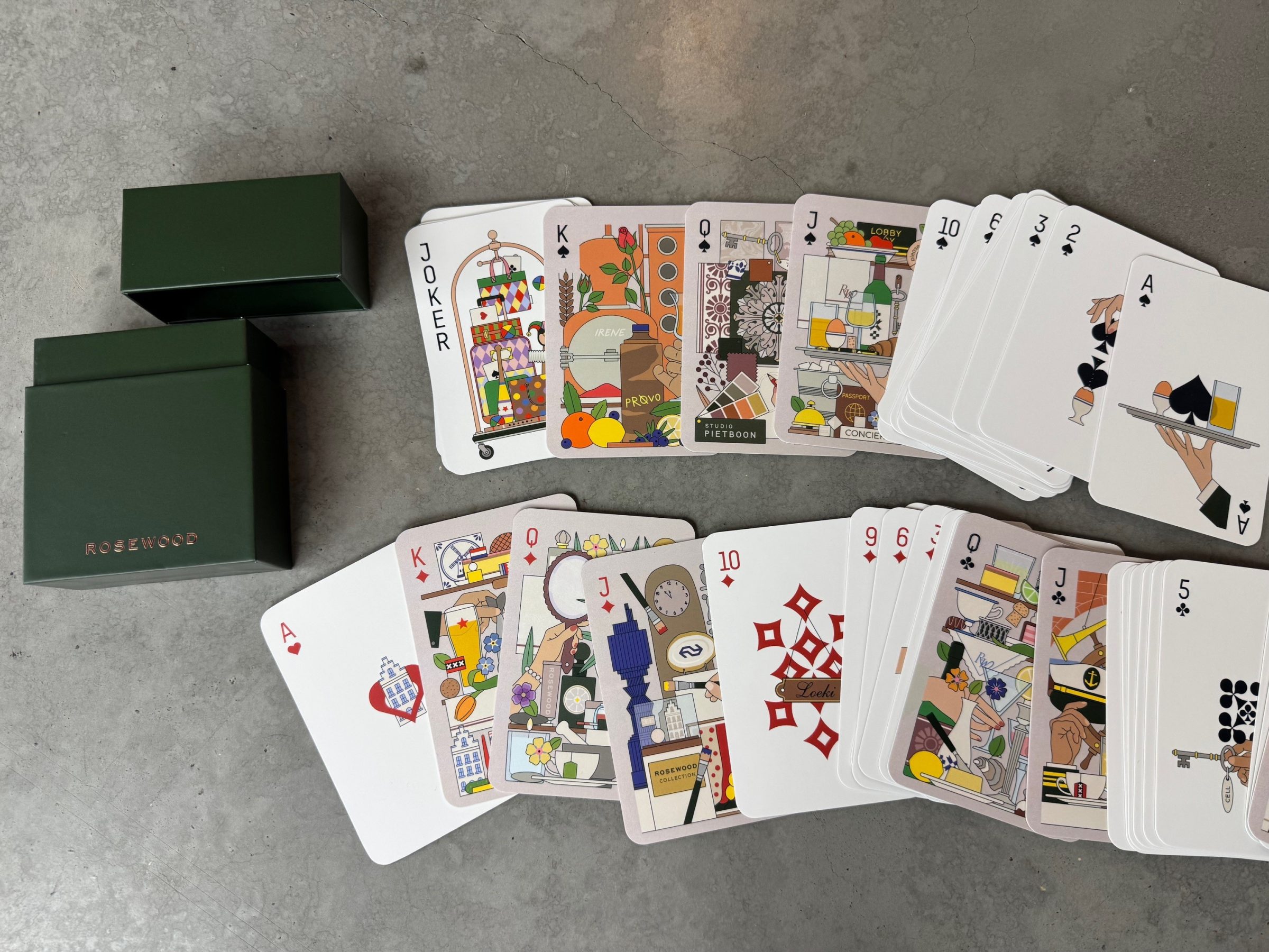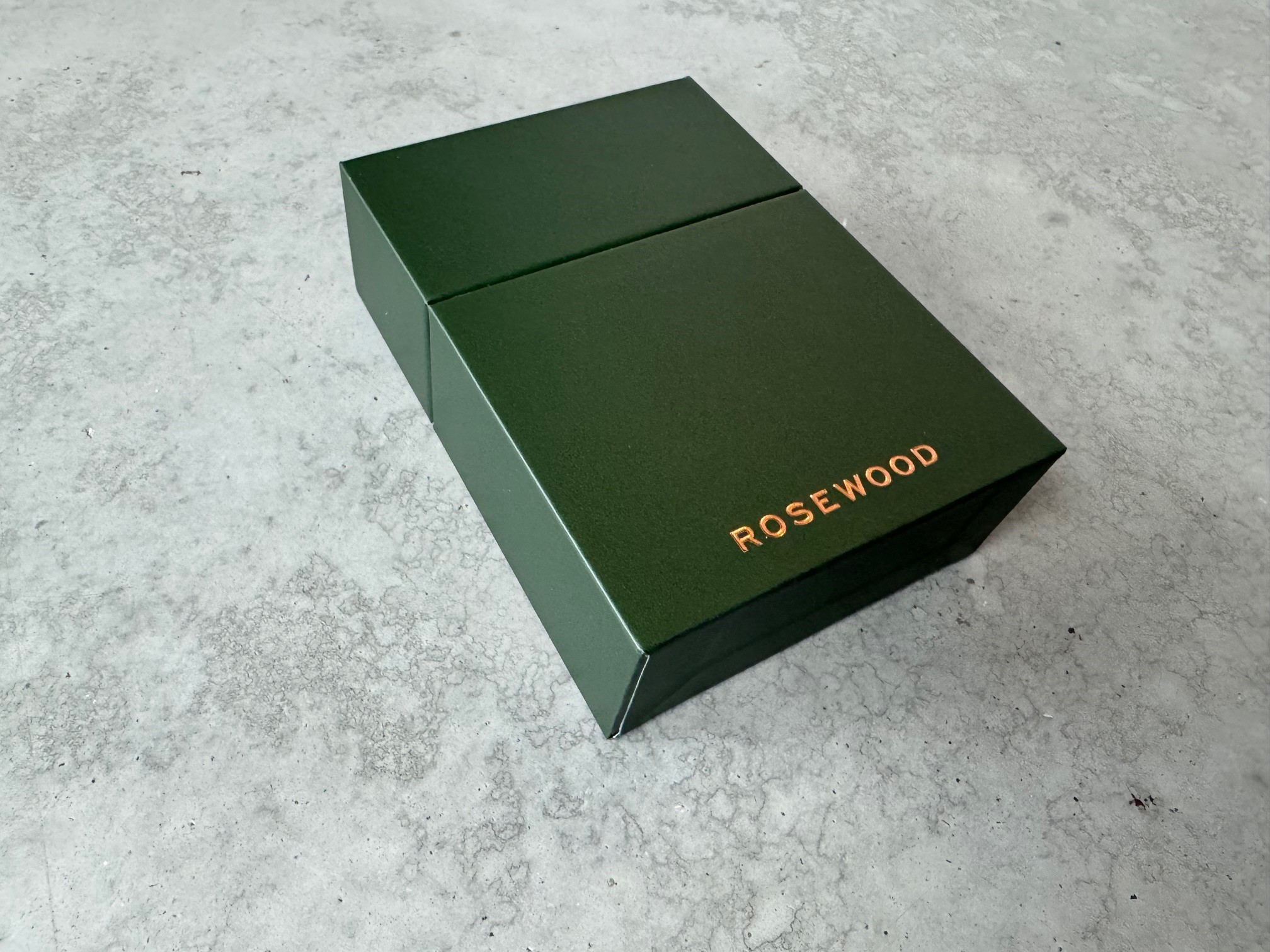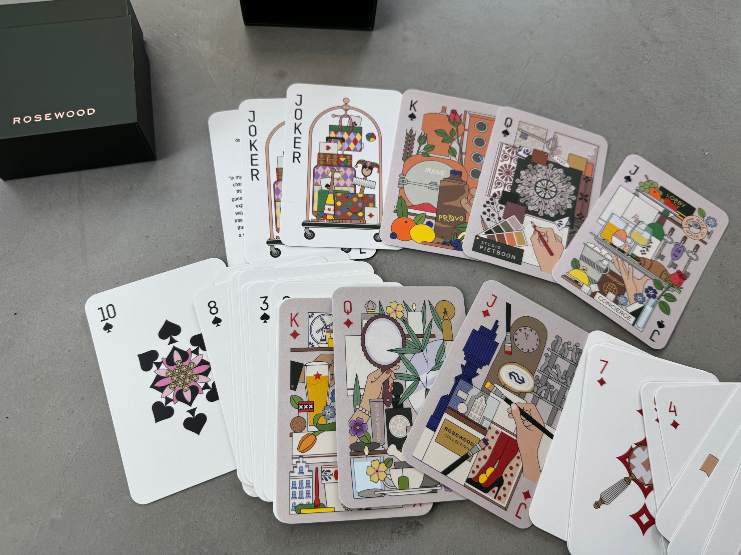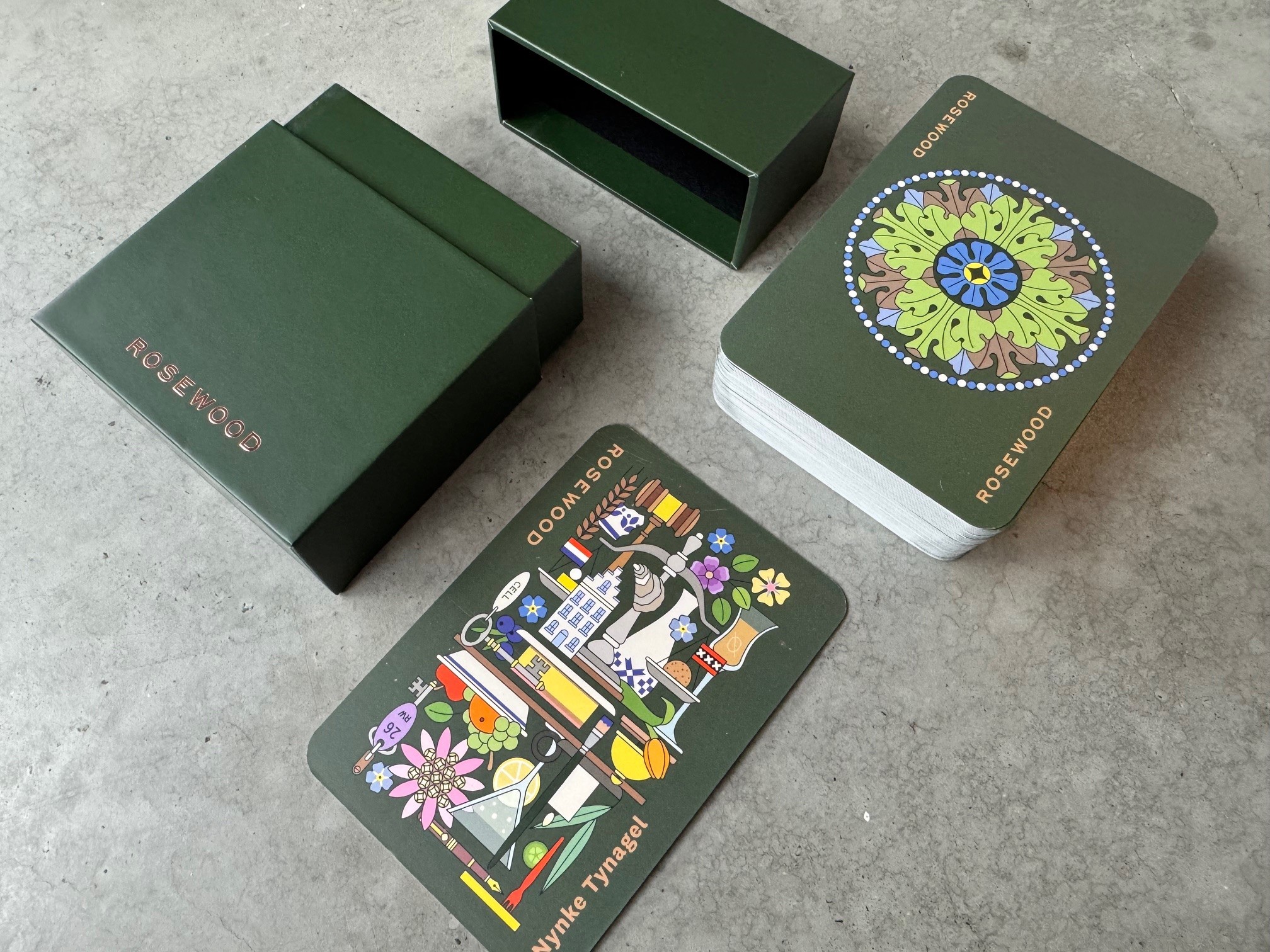 For ROSEWOOD Amsterdam we produced this unique set of playing cards. A handmade box with clean corners. The name on the box is finished in embossed rose gold.