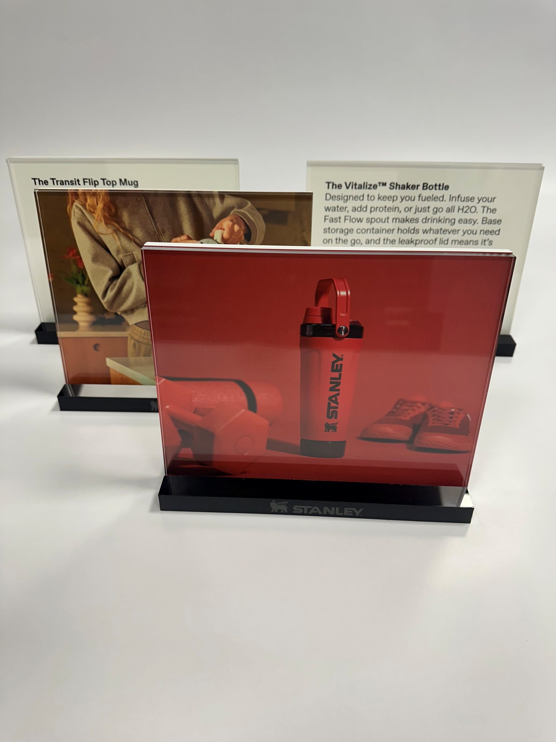 Thanks to the interchangeable paper top card, different colors of the Stanley Transit Flip Top Mug can be presented in a striking and organized manner. This makes the system not only practical to use but also highly customizable visually.